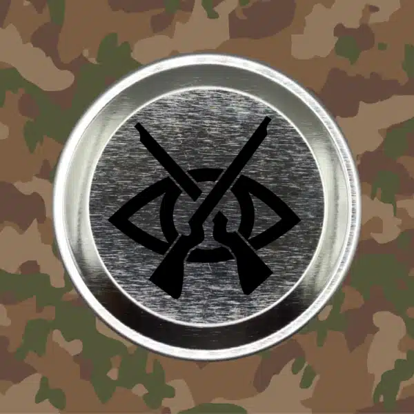 Dieses Militär-Schnupfdösli „Sicherungssoldat“ vereint Tradition, Funktionalität und Symbolkraft. Gefertigt aus Weissblech mit Schutzschicht, trägt die Dose das Funktionsabzeichen der Sicherungssoldaten (SiSo) – ein Erkennungszeichen für Einsatzbereitschaft im Feld und Verantwortung für die Truppen.